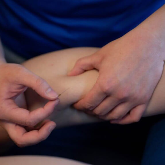 Dry needling is een extra behandelmethode die fysiotherapeuten kunnen toepassen om spieren snel en langdurig te ontspannen. Met een 'droge' acupunctuurnaald wordt de spier aangeprikt, het werkt op specifieke punten ('triggerpoints') en is geen 'energie' behandeling, zoals bij acupunctuur.