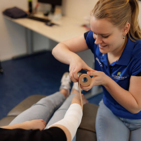 - Lymfetaping, een techniek waarbij elastische tape op de huid wordt aangebracht om de lymfestroom te verbeteren en zwelling te verminderen.
